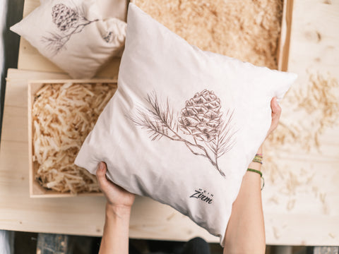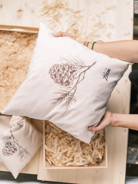 Con il progetto “My Zirm” mettiamo a frutto i resti dei nostri progetti di costruzione di falegnameria. Nel nostro laboratorio sul Renon realizziamo prodotti fatti a mano come scatole decorative e cuscini di pino da trucioli e assi. Ogni pezzo è progettato con attenzione ai dettagli e consapevolezza dell'ambiente, seguendo la filosofia "Zero Waste".